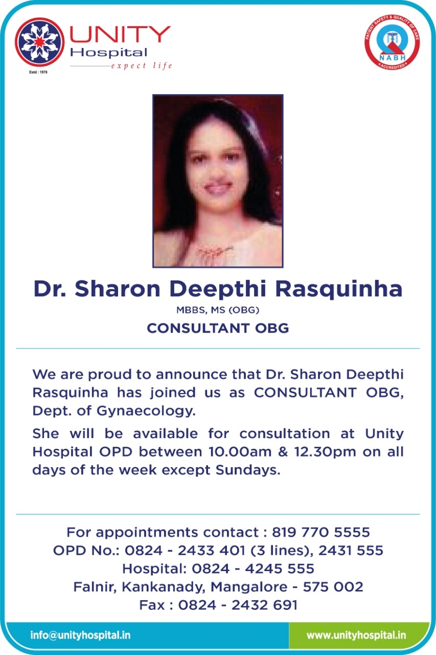 We are proud to announce that Dr. Sharon Deepthi Rasquinha has joined us as Consultant OBG, Dept. of Gynaecology